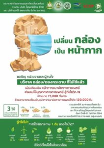 กระทรวงทรัพยากรธรรมชาติและสิ่งแวดล้อม ขอเชิญหน่วยงาน และผู้สนใจ มาร่วมบริจาค “กล่อง ซองกระดาษ ที่ไม่ใช้แล้ว” เพื่อเปลี่ยนเป็น “หน้ากากอนามัยทางการแพทย์” พร้อมส่งมอบให้บุคลากรทางการแพทย์ สู้ภัย COVID-19