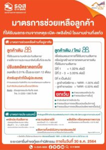 - สาขาของ ธอส. ตั้งแต่บัดนี้เป็นต้นไป ถึงภายในวันที่ 30 ธันวาคม 2564 หรือภายใต้กรอบวงเงินที่ธนาคารกำหนด