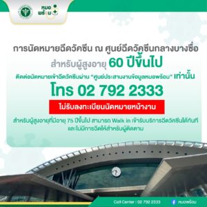 กรมการแพทย์ แจ้งการนัดหมายฉีดวัคซีน ณ ศูนย์ฉีดวัคซีนกลางบางซื่อ ไม่รับลงทะเบียนหน้างาน ข่าวสารกิจกรรม, ข่าวไวรัสโควิด-19 กรมการแพทย์ แจ้งการนัดหมายฉีดวัคซีน ณ ศูนย์ฉีดวัคซีนกลางบางซื่อ ไม่รับลงทะเบียนหน้างาน กรมการแพทย์ แจ้งการนัดหมายฉีดวัคซีน ณ ศูนย์ฉีดวัคซีนกลางบางซื่อ สำหรับผู้สูงอายุ 60 ปีขึ้นไป ไม่รับลงทะเบียนนัดหมายหน้างาน สามารถนัดหมายเข้าฉีดวัคซีนผ่าน ศูนย์ประสานงานข้อมูลหมอพร้อม เท่านั้น โทร. 02 792 2333 สำหรับผู้สูงอายุที่มาอายุ 75 ปีขึ้นไป สามารถ Walk in เข้ามารับบริการฉีดวัคซีนได้ทันที และไม่มีการฉีดให้สำหรับผู้ติดตาม ที่มา : https://bit.ly/2T8dYpi Post Views: 34 FacebookFacebookXTwitterLINELine