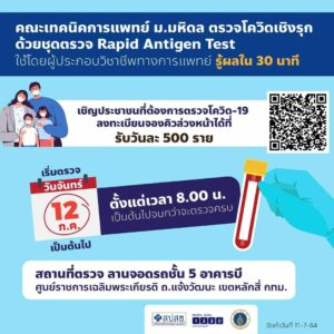 สปสช.ร่วมกับคณะเทคนิคการแพทย์ มหิดล จัดตั้งศูนย์คัดกรองโควิด 19
