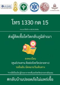 กระทรวงสาธารณสุข สำนักงานหลักประกันสุขภาพแห่งชาติ สถาบันการแพทย์ฉุกเฉินแห่งชาติ เตรียมระบบส่งต่อผู้ติดเชื้อ/ ผู้ป่วยโควิด 19 ที่มีอาการคงที่ และประสงค์เดินทางกลับไปรักษาตัวยังภูมิลำเนา แสดงความจำนงผ่านสายด่วน สปสช. 1330 (กด15) โดยสปสช.และกระทรวงสาธารณสุข จะประสานจังหวัดปลายทาง และวางแผนการส่งตัวร่วมกับ สถาบันการแพทย์ฉุกเฉิน กองทัพบก กระทรวงคมนาคม และหน่วยงานที่เกี่ยวข้อง
