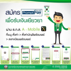 ธนาคารเพื่อการเกษตรและสหกรณ์การเกษตร แนะนำสมัคร Prompt Pay (พร้อมเพย์) เพื่อรับเงินเยียวยา ผ่านแอพพลิเคชั่น ธกส. A-Mobile ได้แล้ววันนี้ เพื่อให้การรับโอนเงินจากภาครัฐเป็นเรื่องที่ง่าย สะดวก รวดเร็ว และปลอดภัย