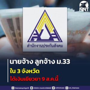สำนักงานประกันสังคม เตรียมจ่ายเงินเยียวยานายจ้าง ลูกจ้าง มาตรา 33 ใน 3 จังหวัดที่เหลือ เริ่ม 9 ส.ค. 64