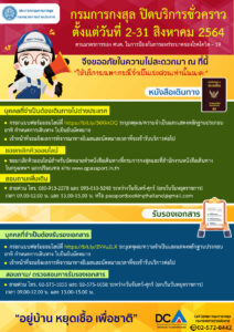 กรมการกงสุล ประกาศปิดบริการชั่วคราว ตั้งแต่วันที่ 2 – 31 สิงหาคม 2564