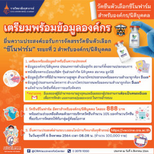 เตรียมพร้อมข้อมูลองค์กร สำหรับยื่นความประสงค์ขอรับการจัดสรรวัคซีนตัวเลือก “ซิโนฟาร์ม” ระยะที่ 2 สำหรับองค์กร/นิติบุคคล