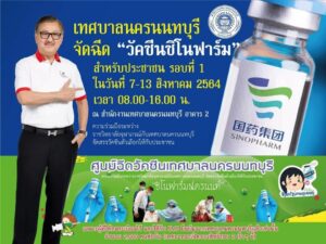 เทศบาลนครนนทบุรี เปิดเผยกำหนดการรับวัคซีนโควิด 19 (วัคซีนทางเลือก “ซิโนฟาร์ม”)