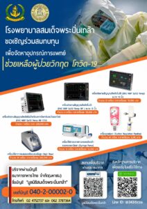 โรงพยาบาลสมเด็จพระปิ่นเกล้า ขอเชิญร่วมสมทบทุน เพื่อจัดหาอุปกรณ์ทางการแพทย์ ช่วยเหลือผู้ป่วยวิกฤตโควิด 19