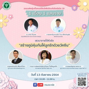 กรมอนามัย ขอเชิญรับชมเสวนาภายใต้หัวข้อ “สร้างภูมิคุ้มกันให้ลูกรักด้วยวัคซีน” ข่าวสารกิจกรรม, ข่าวไวรัสโควิด-19 กรมอนามัย ขอเชิญรับชมเสวนาภายใต้หัวข้อ “สร้างภูมิคุ้มกันให้ลูกรักด้วยวัคซีน” กรมอนามัย ขอเชิญรับชมเสวนาภายใต้หัวข้อ “สร้างภูมิคุ้มกันให้ลูกรักด้วยวัคซีน” ในเดือนแห่งการรณรงค์หญิงตั้งครรภ์รับวัคซีนป้องกันโรคโควิด 19 “1 เดือน 1 แสนราย” ในวันที่ 13 กันยายน 2564 เวลา 10.00 – 12.00 น. ผ่านทาง Live สดผ่านทางเพจ Facebook : กรมอนามัย พบกับวิทยากร ศาสตราจารย์แพทย์หญิงกุลกัญญา โชคไพบูลย์กิจ คณะแพทยศาสตร์ศิริราชพยาบาล และนายแพทย์ธงชัย เลิศวิไลรัตนพงศ์ ผู้ตรวจราชการกระทรวงสาธารณสุข ที่มา : https://bit.ly/3z34kTD Post Views: 35 FacebookFacebookXTwitterLINELine