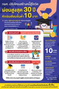 ทั้งนี้ หากผู้กู้ยืมยังไม่สามารถชำระหนี้ได้ในสถานการณ์นี้ กองทุนได้ลดเบี้ยปรับให้เหลือเพียง 0.5% รวมทั้งชะลอการฟ้องคดี บังคับคดี ยกเว้นคดีที่จะขาดอายุความ และงดการขายทอดตลาดไว้จนถึงสิ้นปีนี้