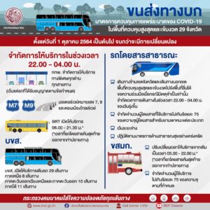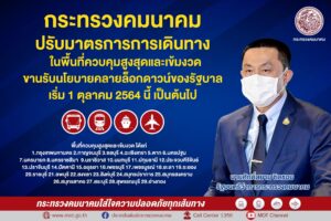 กระทรวงคมนาคม ปรับมาตรการการเดินทางในพื้นที่ควบคุมสูงสุดและเข้มงวด ตามนโยบายคลายล็อกดาวน์ของรัฐบาล เริ่มวันที่ 1 ตุลาคม 2564 เป็นต้นไป