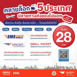บริษัท ไปรษณีย์ไทย จำกัด แจ้งคลายล็อก 5 ประเทศ ปลายทางส่งของไปนอก ได้แก่ ประเทศอินเดีย ประเทศมัลดีฟส์ ประเทศบังกลาเทศ ประเทศแอลจีเรีย ประเทศอิรัก เริ่มวันที่ 1 ตุลาคม 2564
