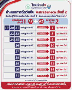 ไทยร่วมใจ แจ้งกำหนดการฉีดวัคซีน AZ เข็มที่ 2 สำหรับผู้ฉีด AZ เข็มที่ 1 ในเดือนกรกฎาคม