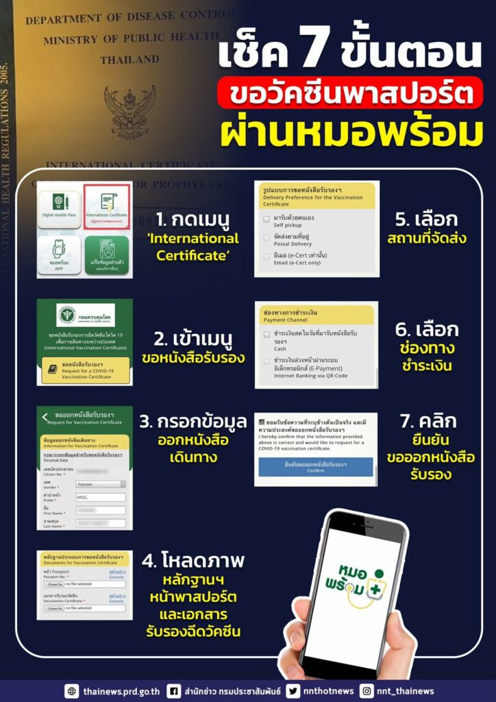 หมอพร้อม แนะนำเช็ค 7 ขั้นตอนง่ายๆ ขอ “วัคซีนพาสปอร์ต” ผ่านหมอพร้อม ข่าวสารกิจกรรม, ข่าวไวรัสโควิด-19 หมอพร้อม แนะนำเช็ค 7 ขั้นตอนง่ายๆ ขอ “วัคซีนพาสปอร์ต” ผ่านหมอพร้อม หมอพร้อม แนะนำเช็ค 7 ขั้นตอนง่ายๆ ขอ “วัคซีนพาสปอร์ต” ผ่านหมอพร้อม1. กดเมนู ‘International Certificate’2. เข้าเมนู ขอหนังสือรับรอง3. กรอกข้อมูลออกหนังสือเดินทาง4.โหลดภาพหลักฐานฯ หน้าพาสปอร์ต และเอกสารรับรองฉีดวัคซีน5. เลือกสถานที่จัดส่ง6. เลือกช่องทางชำระเงิน7. คลิก ยืนยันขอออกหนังสือรับรอง ที่มา : https://bit.ly/3C9iB3x Post Views: 210 FacebookFacebookXTwitterLINELine