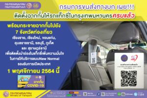 กรมการขนส่งทางบก ติดตั้งฉากกั้นให้แก่รถแท็กซี่ในกรุงเทพมหานครครบแล้ว ข่าวสารกิจกรรม, ข่าวไวรัสโควิด-19 กรมการขนส่งทางบก ติดตั้งฉากกั้นให้แก่รถแท็กซี่ในกรุงเทพมหานครครบแล้ว กรมการขนส่งทางบก ติดตั้งฉากกั้นให้แก่รถแท็กซี่ ในกรุงเทพมหานครครบแล้ว พร้อมไป 7 จังหวัดท่องเที่ยว เชียงราย , เชียงใหม่ , ขอนแก่น , อุบลราชธานี , ชลบุรี , ภูเก็ต และ สุราษฎร์ธานี เพื่อติดตั้งนำร่องในแท็กซี่สร้างความมั่นใจการให้บริการรองรับการเปิดประเทศวันที่ 1 พฤศจิกายน 2564 นี้ที่มา : https://bit.ly/3pStofc Post Views: 33 FacebookFacebookXTwitterLINELine