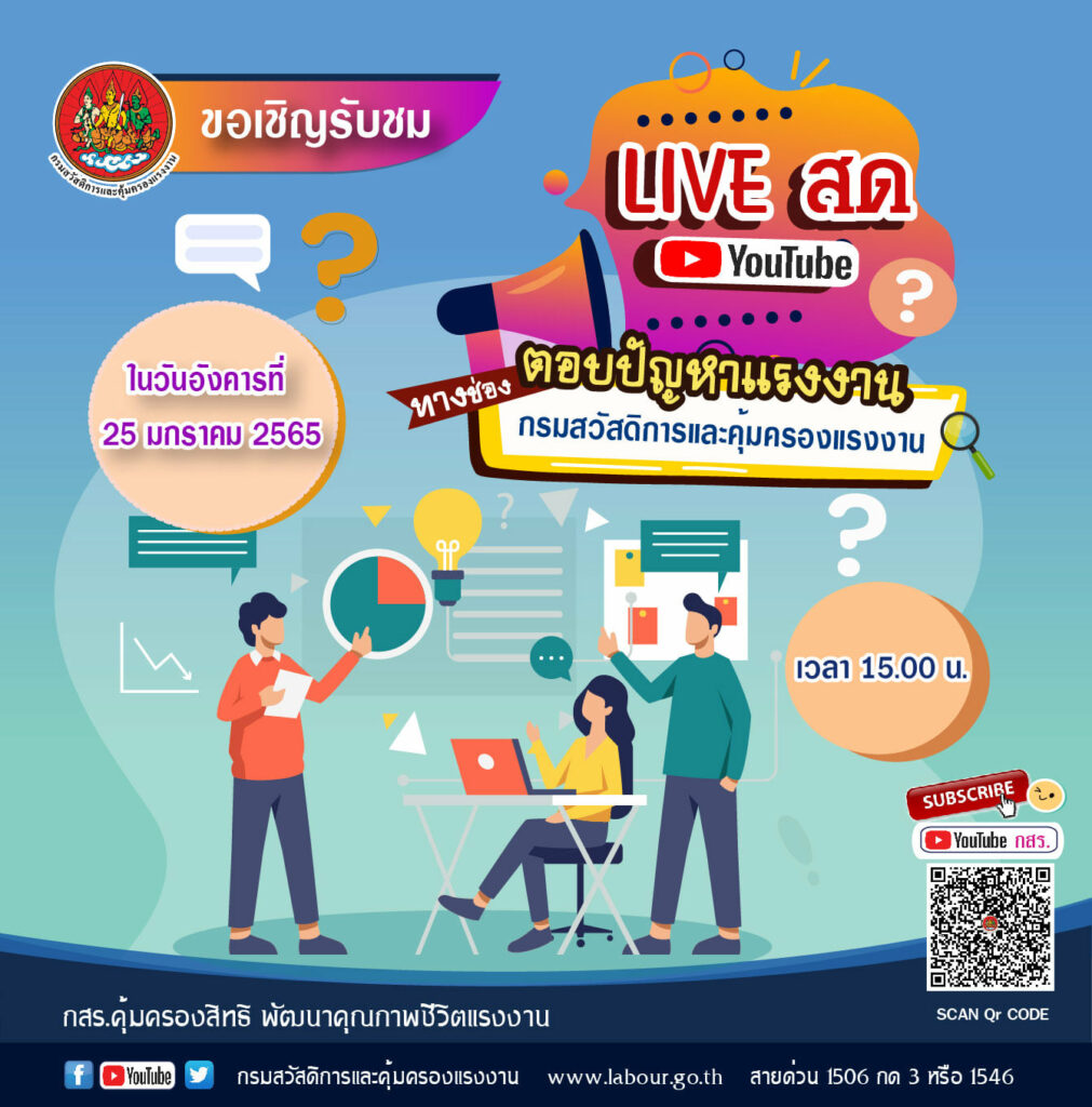 กรมสวัสดิการและคุ้มครองแรงงาน ขอเชิญรับชม Live สด ตอบปัญหาแรงงาน