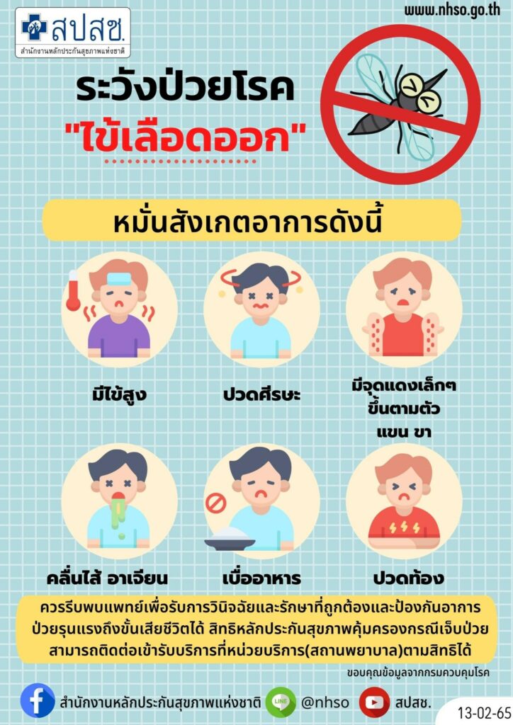 กรมควบคุมโรค กระทรวงสาธารณสุข เตือนภัยประชาชนระวังป่วยโรคป่วยโรคไข้เลือดออก เนื่องจากยุงลายเป็นตัวก่อโรค พร้อมเผยช่วงเดือนมกราคมที่ผ่านมา พบผู้เสียชีวิตจากโรคไข้เลือดออก 2 ราย เนื่องจากผู้ป่วยไม่ได้คิดว่าเป็นไข้เลือดออก จึงไปคลินิกหรือซื้อยามากินเอง ซึ่งหากเป็นยาในกลุ่มเอ็นเสด (NSAIDs) จะมีผลทำให้เลือดออกในช่องทางเดินอาหาร และเสี่ยงต่อการเสียชีวิต ขอย้ำให้ทุกบ้านหมั่นสังเกตอาการ หากมีคนในบ้านป่วยมีไข้สูงลอยติดต่อกัน 2 วัน ให้นึกถึงทั้งโรคโควิด 19 หรืออาจเป็นไข้เลือดออก หากกินยาลดไข้แล้วอาการไม่ดีขึ้น อย่านิ่งนอนใจ ให้รีบพาไปพบแพทย์ เพื่อรับการวินิจฉัยและรักษาที่ถูกต้องและป้องกันอาการป่วยรุนแรงถึงขั้นเสียชีวิตได้