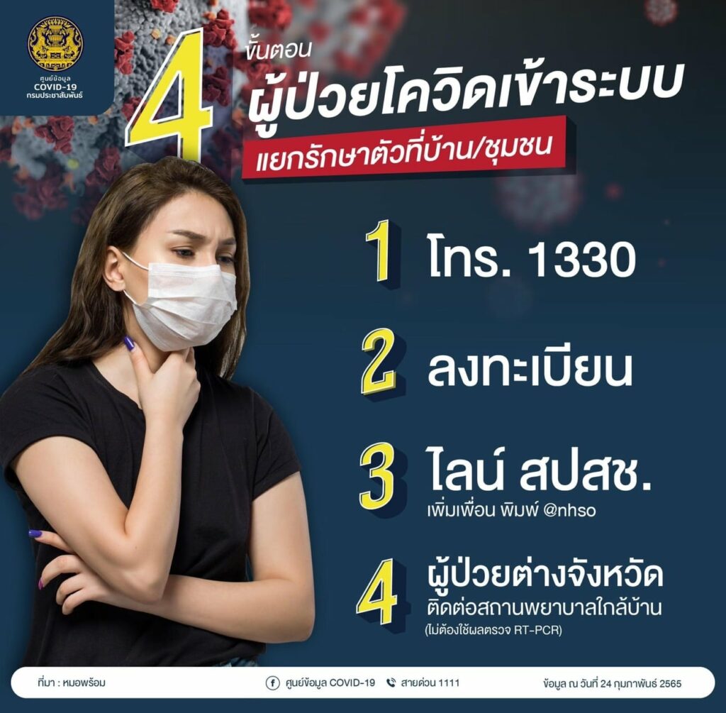 กรมควบคุมโรค แนะนำ 4 ขั้นตอน ผู้ป่วยโควิดเข้าระบบแยกรักษาตัวที่บ้าน/ชุมชน ข่าวสารกิจกรรม, ข่าวไวรัสโควิด-19 กรมควบคุมโรค แนะนำ 4 ขั้นตอน ผู้ป่วยโควิดเข้าระบบแยกรักษาตัวที่บ้าน/ชุมชน 1. โทร. 13302. ลงทะเบียน3. ไลน์ สปสช. เพิ่มเพื่อน พิมพ์ @nhso4. ผู้ป่วยต่างจังหวัดติดต่อสถานพยาบาลใกล้บ้าน (ไม่ต้องใช้ผลตรวจ RT-PCR) ที่มา : https://bit.ly/3hhjUo7 Post Views: 23 FacebookFacebookXTwitterLINELine