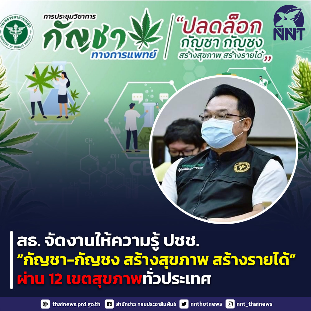 กระทรวงสาธารณสุข จัดงานสร้างความรู้ให้ประชาชน เตรียมตัวใช้ประโยชน์จาก “กัญชา-กัญชง สร้างสุขภาพ สร้างรายได้” ผ่าน 12 เขตสุขภาพทั่วประเทศ ก่อนที่ประกาศ ยศ.5 จะมีผลบังคับใช้วันที่ 9 มิถุนายน 2565 นี้