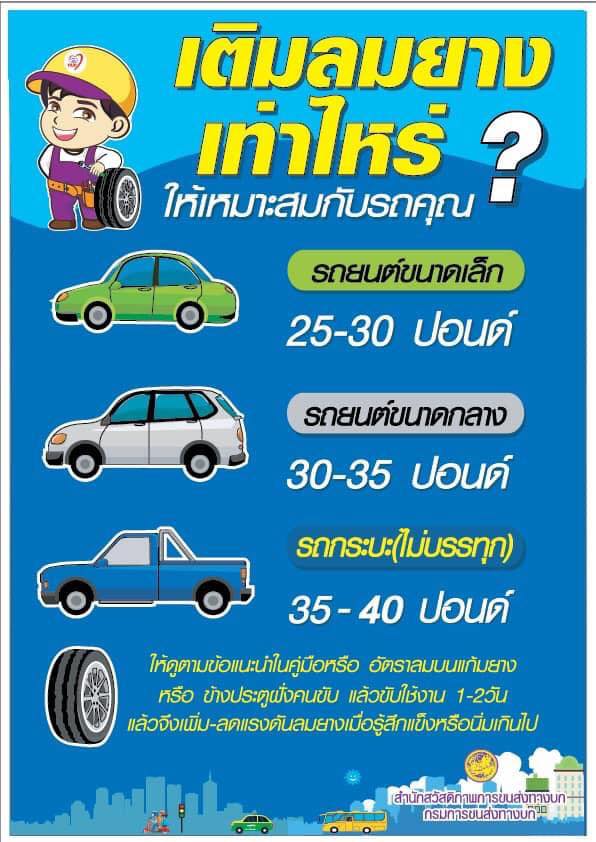 กรมการขนส่งทางบก แนะนำลมยางรถที่อ่อนเกินไป ทำให้สิ้นเปลืองน้ำมันมากกว่าปกติ
