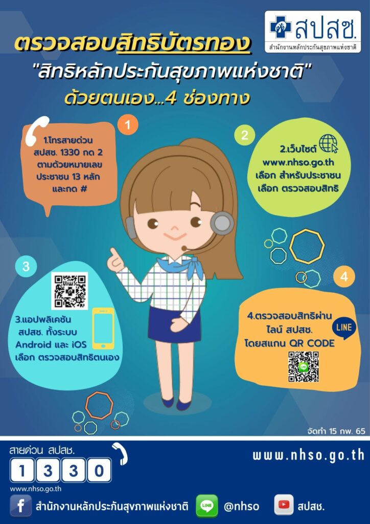 ช่องทางการตรวจสอบสิทธิ (เช็คสิทธิรักษาพยาบาล) ของตนเองได้ 4 ช่องทางดังนี้