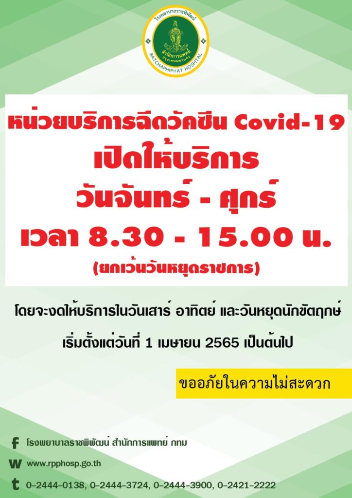 โรงพยาบาลราชพิพัฒน์ สำนักการแพทย์ ประกาศแจ้งปรับเวลาการฉีดวัคซีน COVID – 19 ข่าวสารกิจกรรม, ข่าวไวรัสโควิด-19 โรงพยาบาลราชพิพัฒน์ สำนักการแพทย์ ประกาศแจ้งปรับเวลาการฉีดวัคซีน COVID – 19 ที่มา : https://bit.ly/3NrRyX7 Post Views: 210 FacebookFacebookXTwitterLINELine