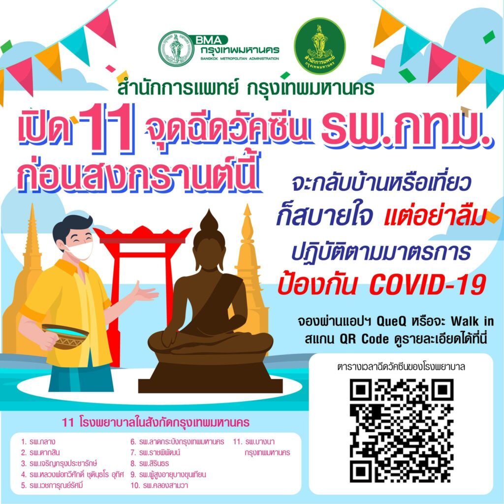 กรุงเทพมหานคร เปิดจุด walk in ฉีดวัคซีนโควิด จองคิวผ่านระบบ QueQ