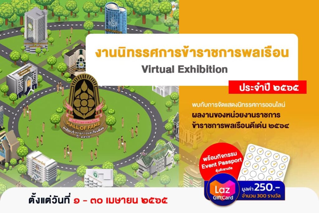 กระทรวงพลังงาน ขอเชิญเข้าชม Virtual Exhibition “งานนิทรรศการข้าราชการพลเรือน ประจำปี 2565” พร้อมร่วมสนุกกับภารกิจง่ายๆ ลุ้นรับ Laz Gift Card มูลค่า 250 บาท จำนวน 300 รางวัล ผ่านทาง www.thaicivilserviceday.com