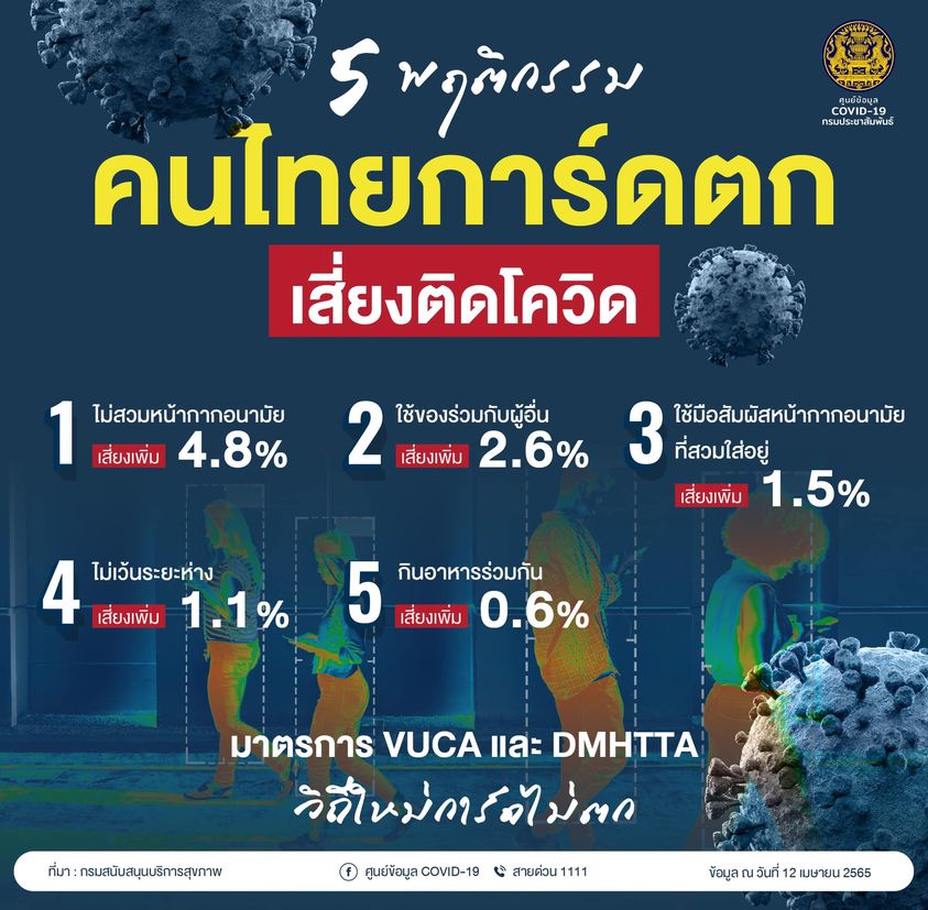 กรมสนับสนุนบริการสุขภาพ เปิดเผย 5 พฤติกรรม คนไทยการ์ดตก เสี่ยงติดโควิด