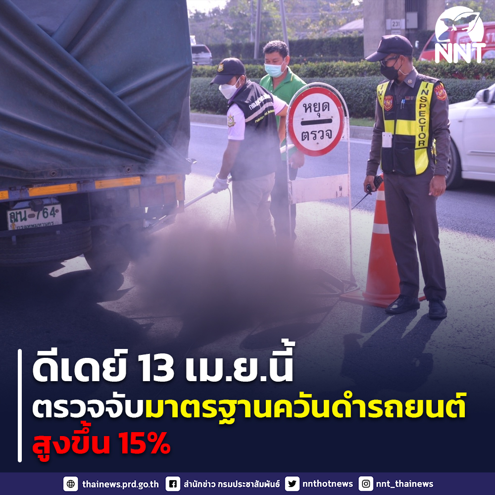 กระทรวงทรัพยากรธรรมชาติและสิ่งแวดล้อม ตรวจจับมาตรฐานควันดำรถยนต์ เริ่มวันที่ 13 เมษายน 2565