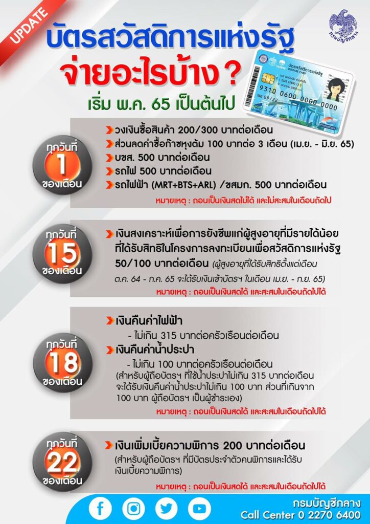 กรมบัญชีกลาง อัปเดตการจ่ายเงินเข้าบัตรสวัสดิการแห่งรัฐ ตั้งแต่ พ.ค. 65 เป็นต้นไป