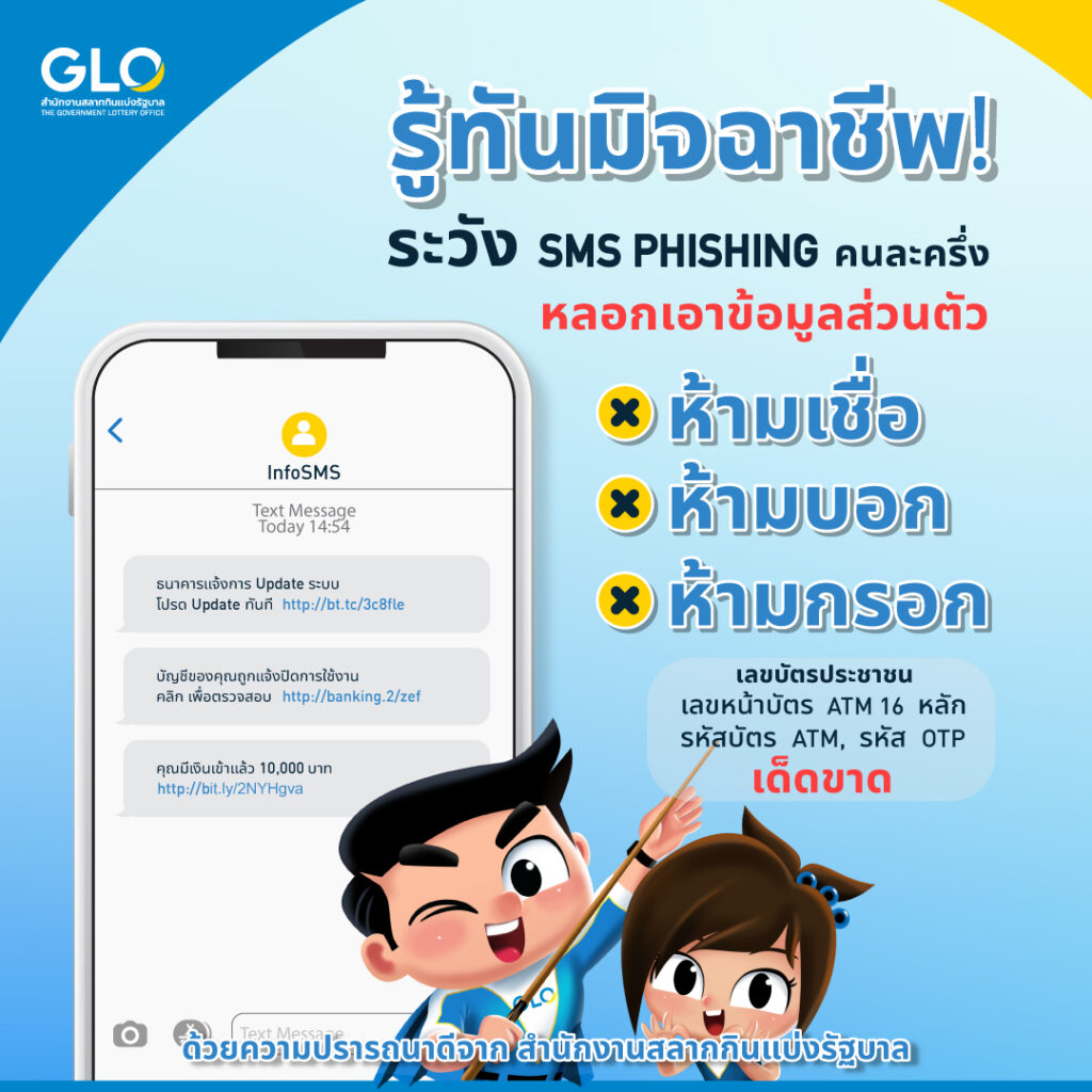 สำนักงานสลากกินแบ่งรัฐบาล เตือนระวัง SMS หลอกเอาข้อมูล แอบอ้างโครงการคนละครึ่ง ขอข้อมูลส่วนตัว