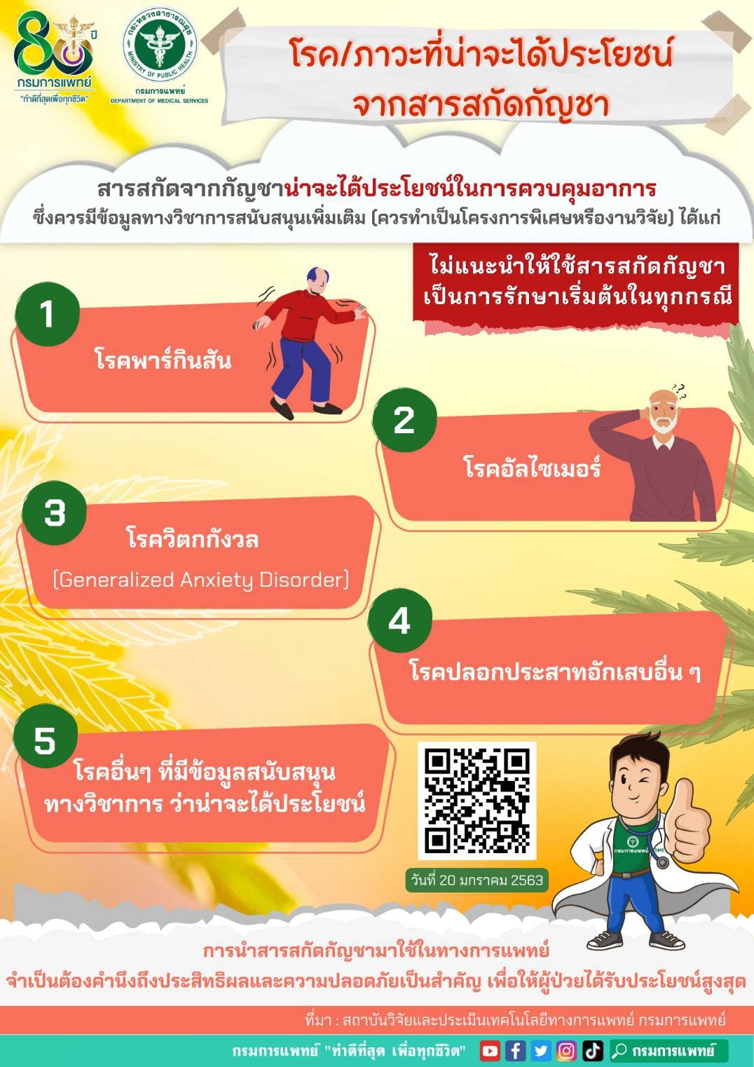 กรมการแพทย์ เปิดเผยโรค/ภาวะที่น่าจะได้ประโยชน์จากสารสกัดกัญชา