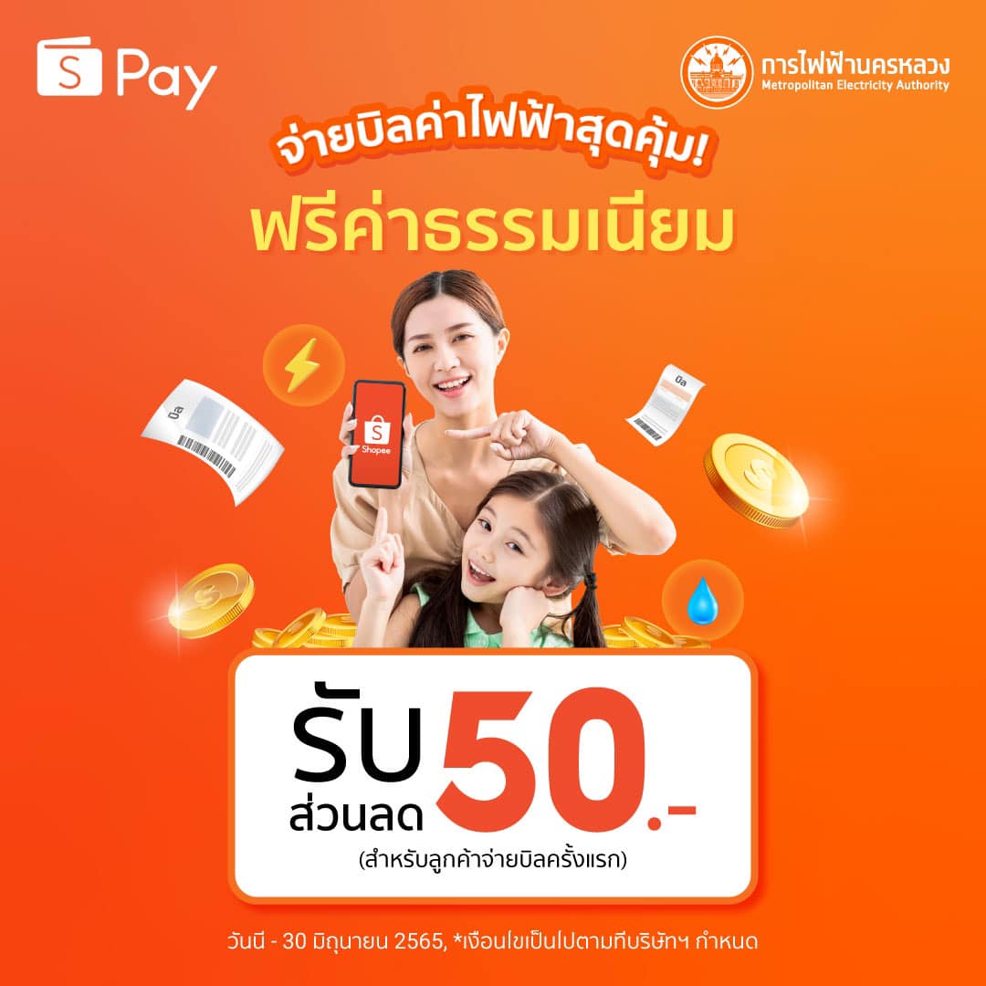การไฟฟ้านครหลวง เปิดตัว Shopee E-service จ่ายบิลค่าไฟฟ้าสุดคุ้ม ฟรีค่าธรรมเนียม ส่วนลด 50 บาท พร้อมฟรีค่าธรรมเนียมค่าน้ำ ค่าไฟฟ้า เพียงจ่ายบิลผ่าน Shopee ครั้งแรก