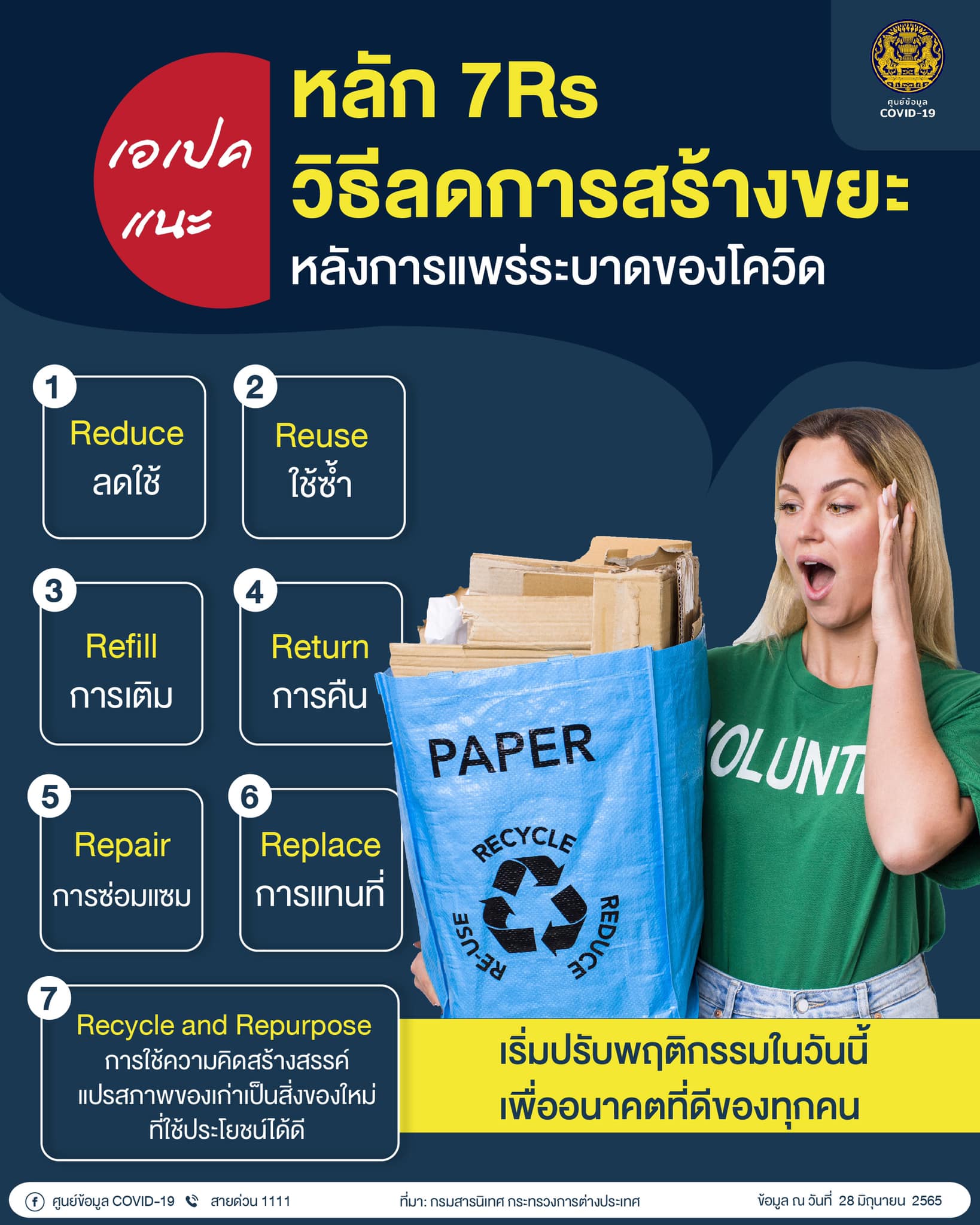 กระทรวงการต่างประเทศ แนะนำหลัก 7Rs หรือวิธีลดการสร้างขยะ หลังการแพร่ระบาดของโควิด