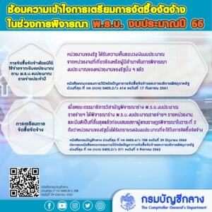 กรมบัญชีกลาง ซ้อมความเข้าใจให้หน่วยงานของรัฐถือปฏิบัติตามแนวทางปฏิบัติเกี่ยวกับการเตรียมการจัดซื้อจัดจ้าง ตามระเบียบกระทรวงการคลังว่าด้วยการจัดซื้อจัดจ้างและการบริหารพัสดุภาครัฐ พ.ศ. 2560