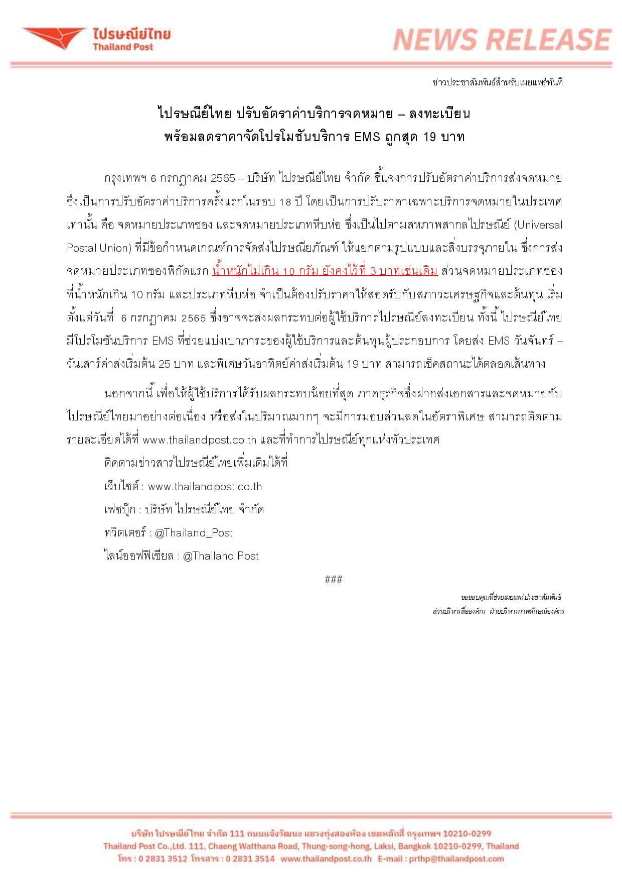 ไปรษณีย์ไทย ปรับอัตราค่าบริการจดหมาย – ลงทะเบียน EMS ถูกสุด 19 บาท ข่าวสารกิจกรรม ไปรษณีย์ไทย ปรับอัตราค่าบริการจดหมาย – ลงทะเบียน EMS ถูกสุด 19 บาท ไปรษณีย์ไทย ปรับอัตราค่าบริการจดหมาย – ลงทะเบียน พร้อมลดราคาจัดโปรโมชันบริการ EMS ถูกสุด 19 บาทที่มา : https://bit.ly/3Ru22aK Post Views: 371 FacebookFacebookXTwitterLINELine