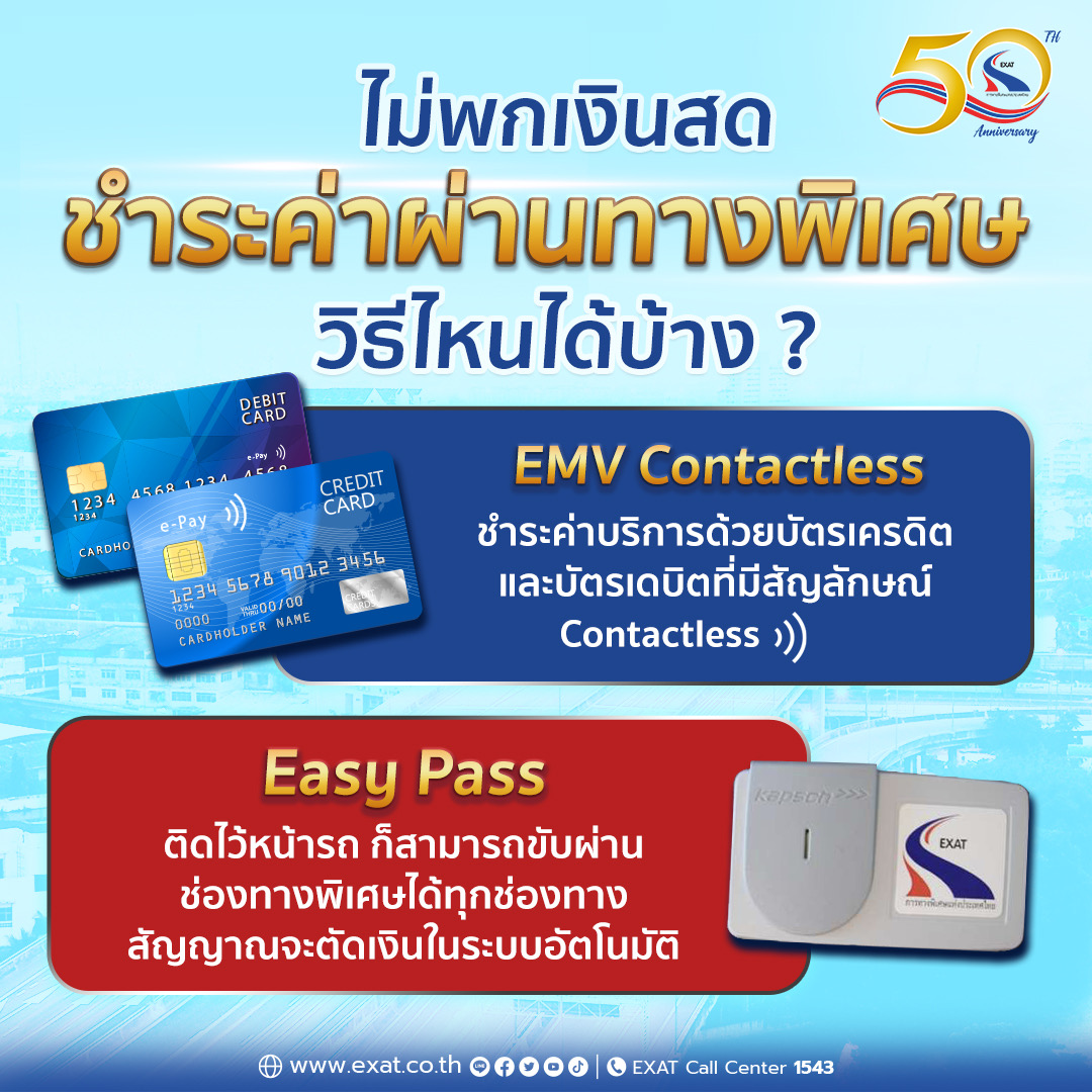 EMV Contactless ชำระค่าผ่านทางด้วยบัตรเครดิตหรือเดบิตที่มีสัญลักษณ์ Contactless ได้ที่ช่องเงินสด