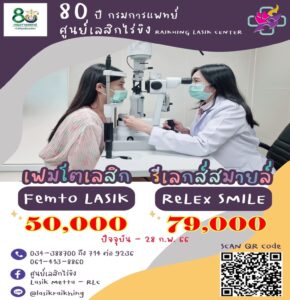 รพ.เมตตาประชารักษ์ (วัดไร่ขิง) โดยศูนย์เลสิกจัดโปรโมชั่นพิเศษในการทำเลสิกแก้ปัญหาสายตา ด้วยเทคโนโลยีที่ทันสมัย โดยใช้เฟมโตเลเซอร์ หรือเฟมโตเลสิก และ ReLEx SMILE เพื่อร่วมเฉลิมฉลอง 80 ปีกรมการแพทย์