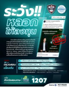 ตำรวจPCT เตือนประชาชนให้ระวังอย่าหลงกลมิจฉาชีพหลอกลงทุนในผ่านเฟซบุ๊ก