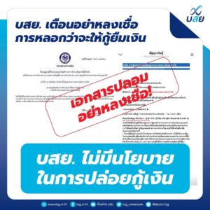 บรรษัทประกันสินเชื่ออุตสาหกรรมขนาดย่อม เตือนอย่าหลงเชื่อการหลอกว่าจะให้กู้ยืมเงิน