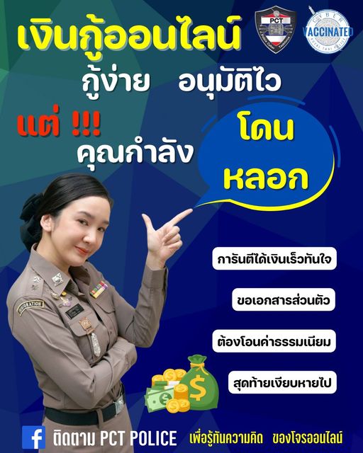ศูนย์ปราบปรามอาชญากรรมทางเทคโนโลยีสารสนเทศ สำนักงานตำรวจแห่งชาติ (ศปอส.ตร.) เตือนอย่าได้หลงเชื่อ เงินกู้ออนไลน์ กู้ง่าย อนุมัติไว