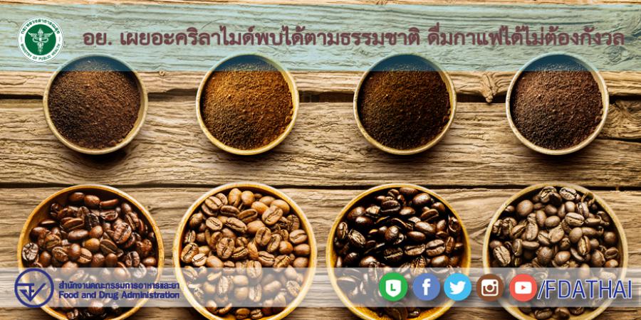 สำนักงานคณะกรรมการอาหารและยา เปิดเผยอะคริลาไมด์พบได้ตามธรรมชาติ ดื่มกาแฟได้ไม่ต้องกังวล หลังมีข่าวตรวจพบการปนเปื้อนสารอะคริลาไมด์ในกาแฟคั่ว 12 ยี่ห้อ และกาแฟสำเร็จรูป 15 ยี่ห้อ ในปริมาณที่แตกต่างกันซึ่งพบปริมาณสูงสุดที่ 954.47 ไมโครกรัม/กิโลกรัม และเกินเกณฑ์ของสหภาพยุโรป นั้น ตามข้อเท็จจริงแล้วยังไม่กำหนดค่าปริมาณสูงสุด (Maximum Level) ไว้ในอาหารแต่ละชนิด ซึ่งเกณฑ์ปนเปื้อนไม่เกิน 400 ไมโครกรัม/กิโลกรัมสำหรับกาแฟคั่ว และไม่เกิน 850 ไมโครกรัม/กิโลกรัม สำหรับกาแฟสำเร็จรูปที่ข่าวกล่าวถึงนั้น เป็นเพียงค่าอ้างอิงเทียบเคียง (Benchmark Level) เพื่อควบคุมปริมาณที่อาจเกิดขึ้นในกระบวนการผลิตอาหารเท่านั้น
