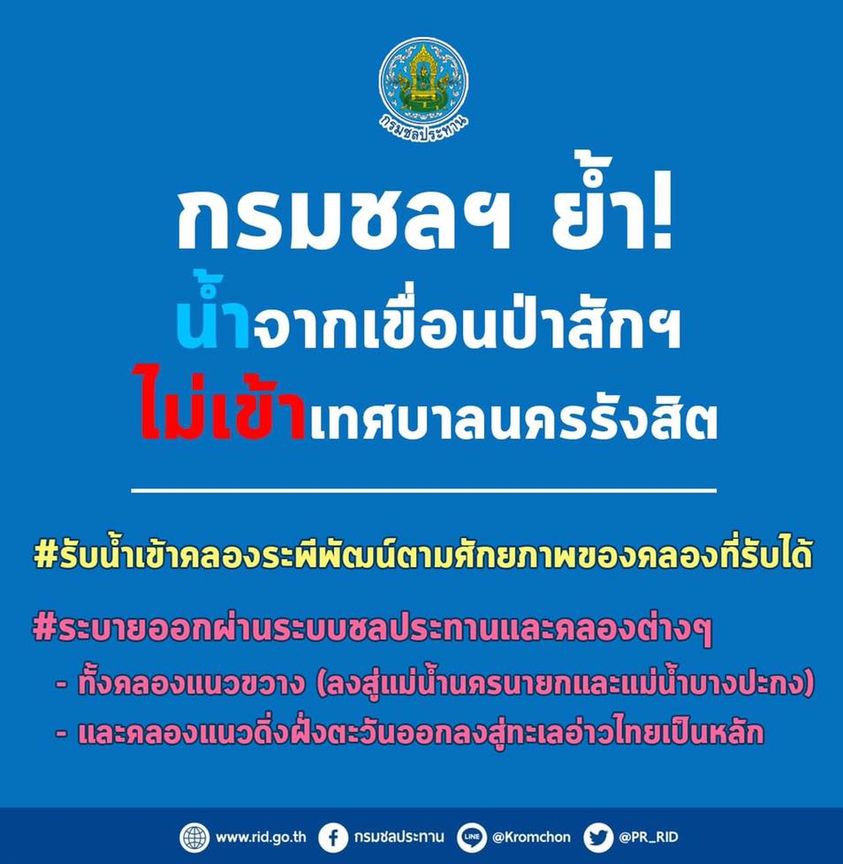 ปริมาณน้ำตามที่กล่าวอ้าง จึงไม่ได้ผ่านเข้าสู่พื้นที่เทศบาลนครรังสิตแต่อย่างใด จึงแจ้งมาเพื่อทราบโดยทั่วกัน