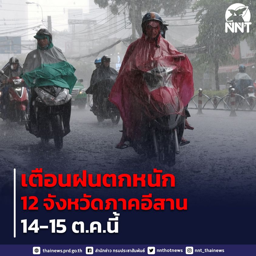 กรมอุตุนิยมวิทยา ออกประกาศ ฉบับที่ 2 เตือนฝนตกหนักใน 12 จังหวัดภาคอีสาน วันที่ 14 – 15 ต.ค. 65