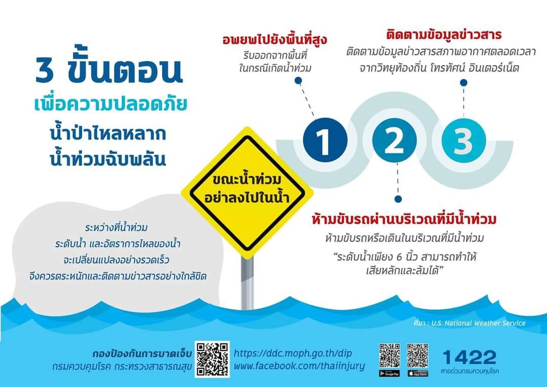 กรมควบคุมโรค แนะนำ 3 ขั้นตอน เพื่อความปลอดภัย น้ำป่าไหลหลาก น้ำท่วมฉับพลัน