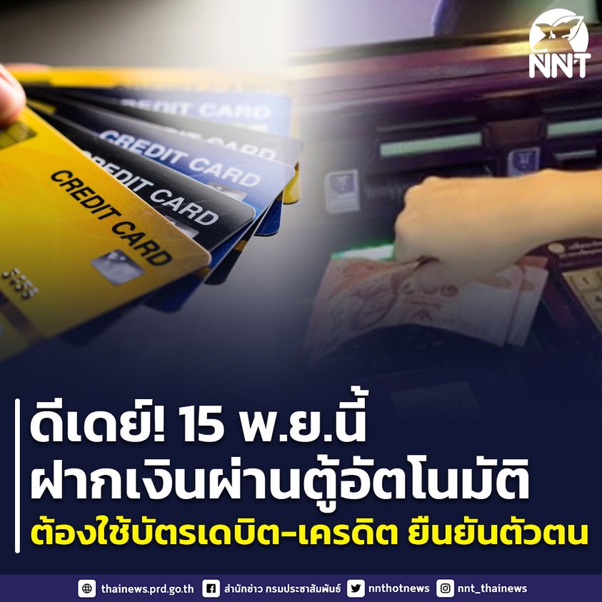 ธนาคารแห่งประเทศไทย ยืนยันวันที่ 15 พ.ย. 65 ฝากเงินผ่านตู้ฝากเงินอัตโนมัติ ต้องใช้บัตรเดบิต-บัตรเครดิต ยืนยันตัวตน