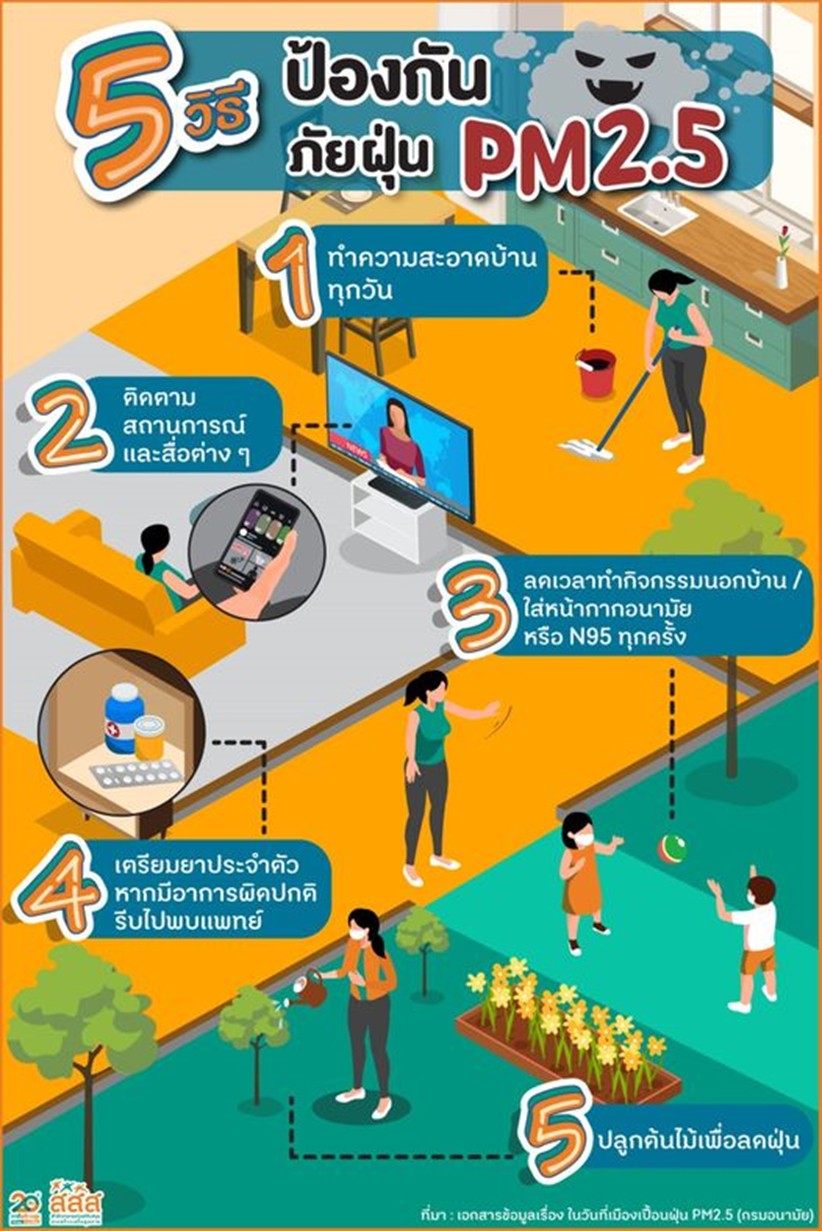สำนักงานกองทุนสนับสนุนการสร้างเสริมสุขภาพ แนะนำ 5 วิธี ช่วยป้องกันภัยฝุ่น PM2.5 ด้วยตัวเอง ข่าวสารกิจกรรม สำนักงานกองทุนสนับสนุนการสร้างเสริมสุขภาพ แนะนำ 5 วิธี ช่วยป้องกันภัยฝุ่น PM2.5 ด้วยตัวเอง สำนักงานกองทุนสนับสนุนการสร้างเสริมสุขภาพ แนะนำ 5 วิธี ช่วยป้องกันภัยฝุ่น PM2.5 ด้วยตัวเอง1. ทำความสะอาดบ้านทุกวัน2. ติดตามสถานการณ์และสื่อต่าง ๆ3. ลดเวลาทำกิจกรรมนอกบ้าน / ใส่หน้ากากอนามัย หรือ N95 ทุกครั้ง4. เตรียมยาประจำตัว หากมีอาการผิดปกติ รีบไปพบแพทย์5. ปลูกต้นไม้เพื่อลดฝุ่น ที่มา : http://bitly.ws/vJya Post Views: 157 FacebookFacebookXTwitterLINELine