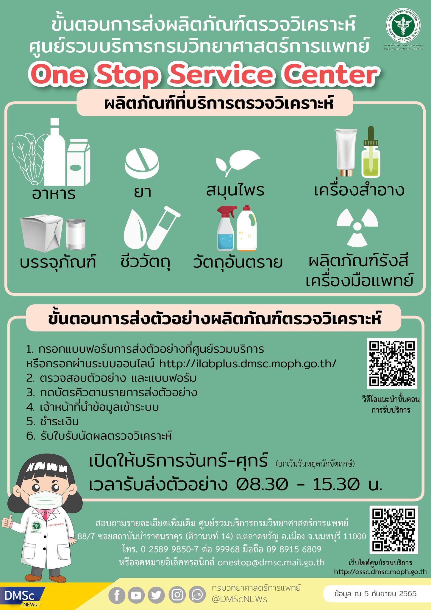 กรมวิทยาศาสตร์การแพทย์ แนะนำขั้นตอนการส่งผลิตภัณฑ์ตรวจวิเคราะห์ที่ศูนย์รวมบริการกรมวิทยาศาสตร์การแพทย์