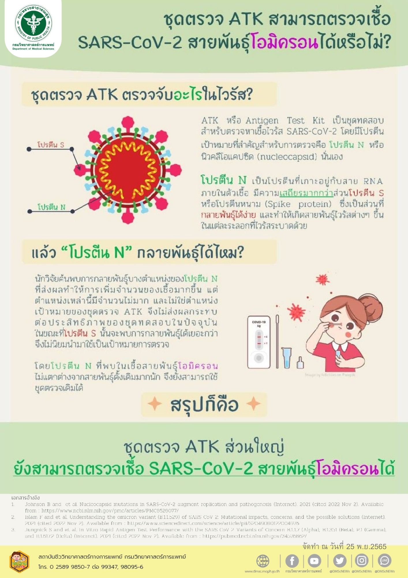 กรมวิทยาศาสตร์การแพทย์ เปิดเผย ชุดตรวจ ATK สามารถตรวจเชื้อโควิด 19 สายพันธุ์โอมิครอน ได้หรือไม่ ข่าวสารกิจกรรม, ข่าวไวรัสโควิด-19 กรมวิทยาศาสตร์การแพทย์ เปิดเผย ชุดตรวจ ATK สามารถตรวจเชื้อโควิด 19 สายพันธุ์โอมิครอน ได้หรือไม่ กรมวิทยาศาสตร์การแพทย์ เปิดเผย ชุดตรวจ ATK สามารถตรวจเชื้อโควิด 19 สายพันธุ์โอมิครอน ได้หรือไม่Q: ชุดตรวจ ATK สามารถตรวจเชื้อโควิด 19 สายพันธุ์โอมิครอน ได้หรือไม่A: ชุดตรวจ ATK ส่วนใหญ่ ยังสามารถตรวจเชื้อโควิด 19 สายพันธุ์โอมิครอนได้ ที่มา : http://bit.ly/3XwK8qz Post Views: 175 FacebookFacebookXTwitterLINELine
