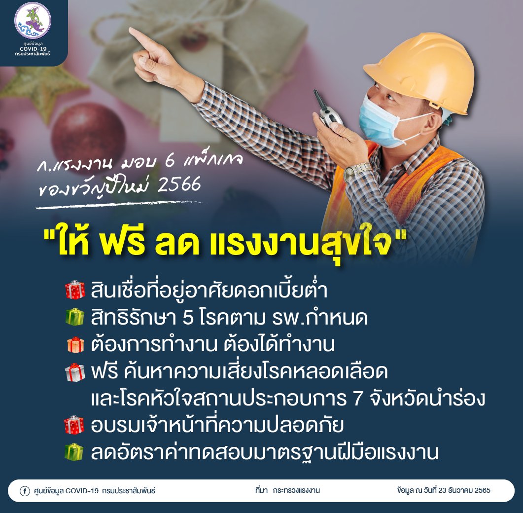 กระทรวงแรงงาน มอบ 6 แพ็กเกจ ของขวัญปีใหม่ 2566 “ให้ ฟรี ลด แรงงานสุขใจ”